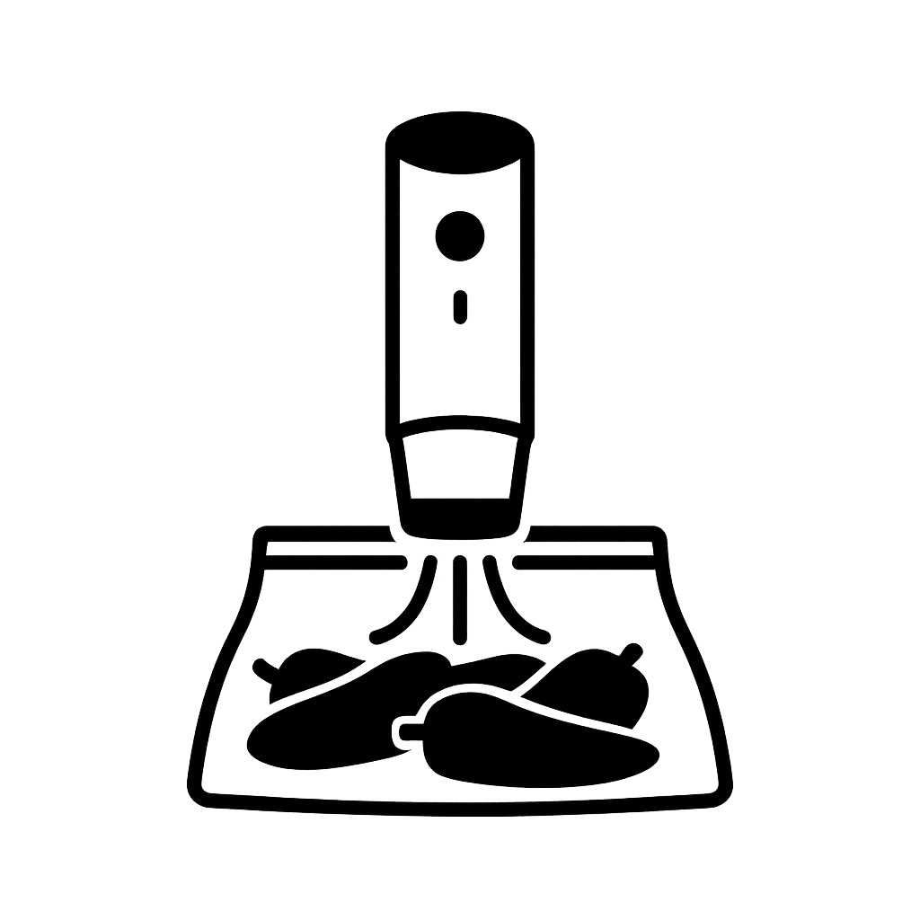 Den här vakuumförpackaren suger ut luften ur påsen där maten ligger – så håller den sig fräsch mycket längre. Den är kraftfull och jobbar snabbt.