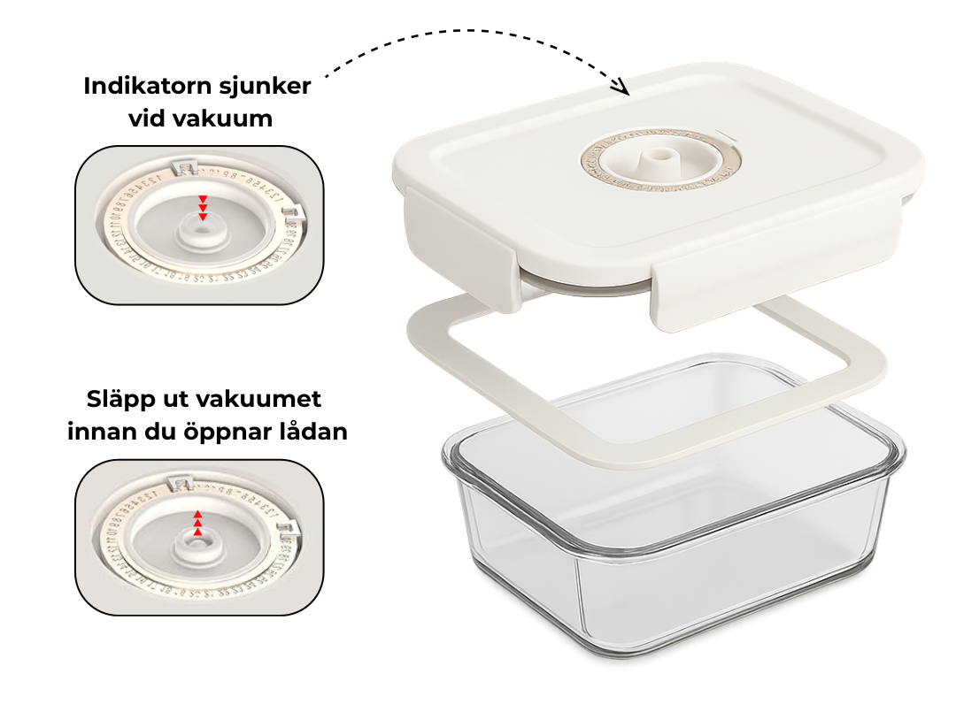 Vakuumfunktionen tar bort överflödig luft och förhindrar oxidation – maten håller sig fräsch mycket längre.